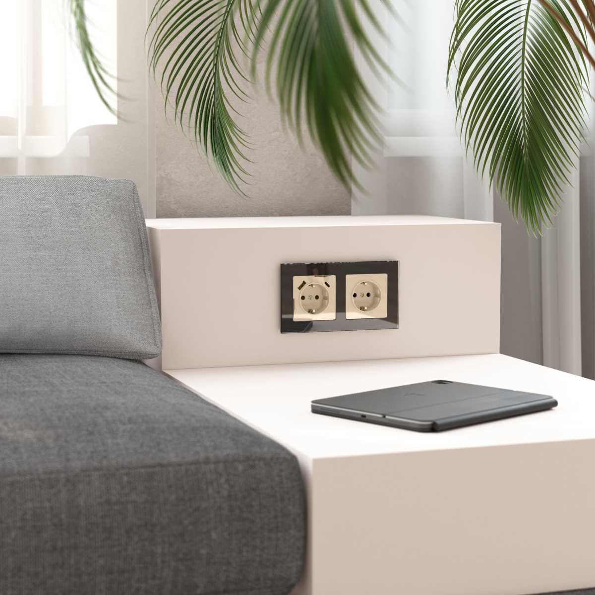 W5072134/ Розетка двойная с заземлением Gallant (черный с серебром)
