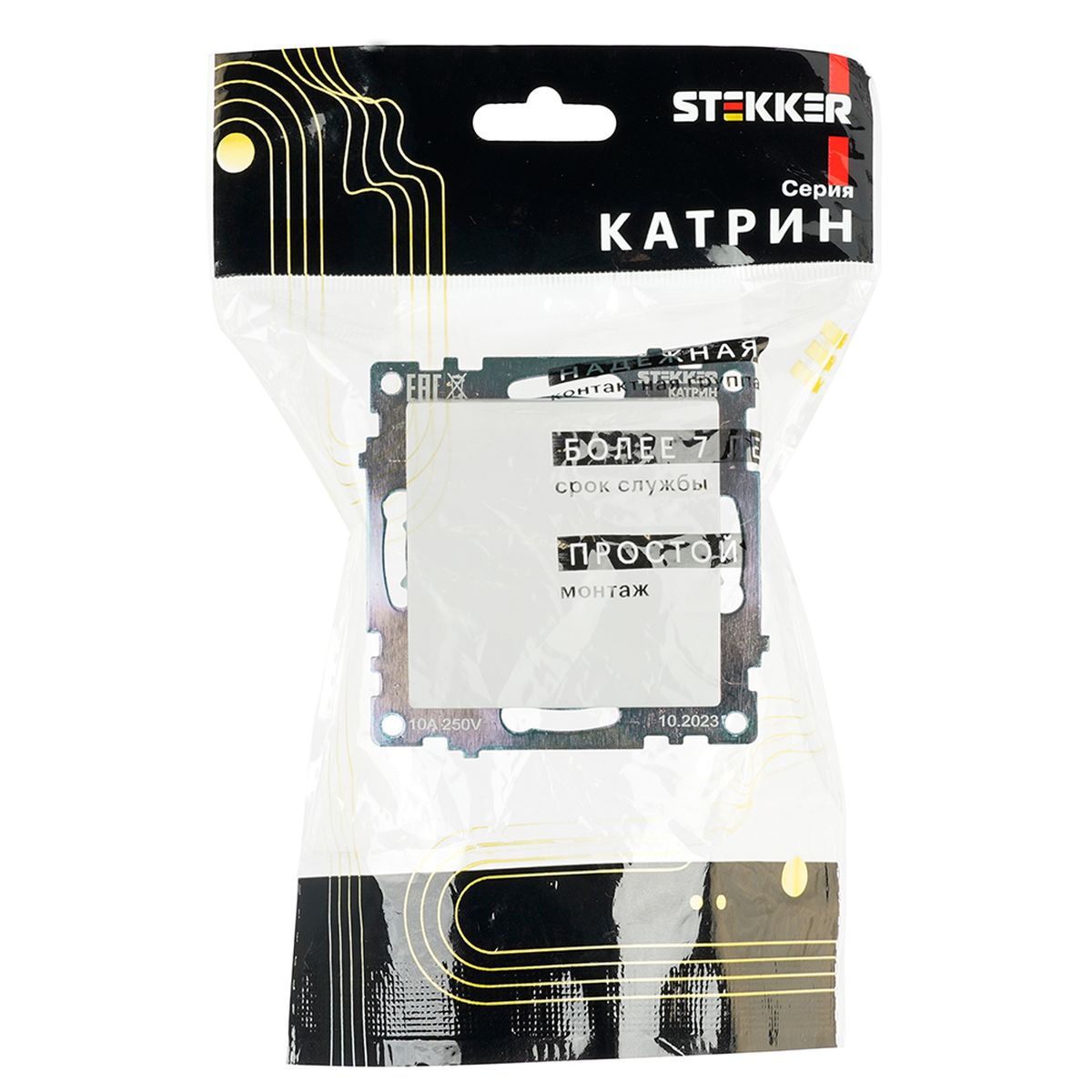Выключатель 1-клавишный c индикатором Stekker GLS10-7001-05, 250В, 10А Катрин, черный 39503