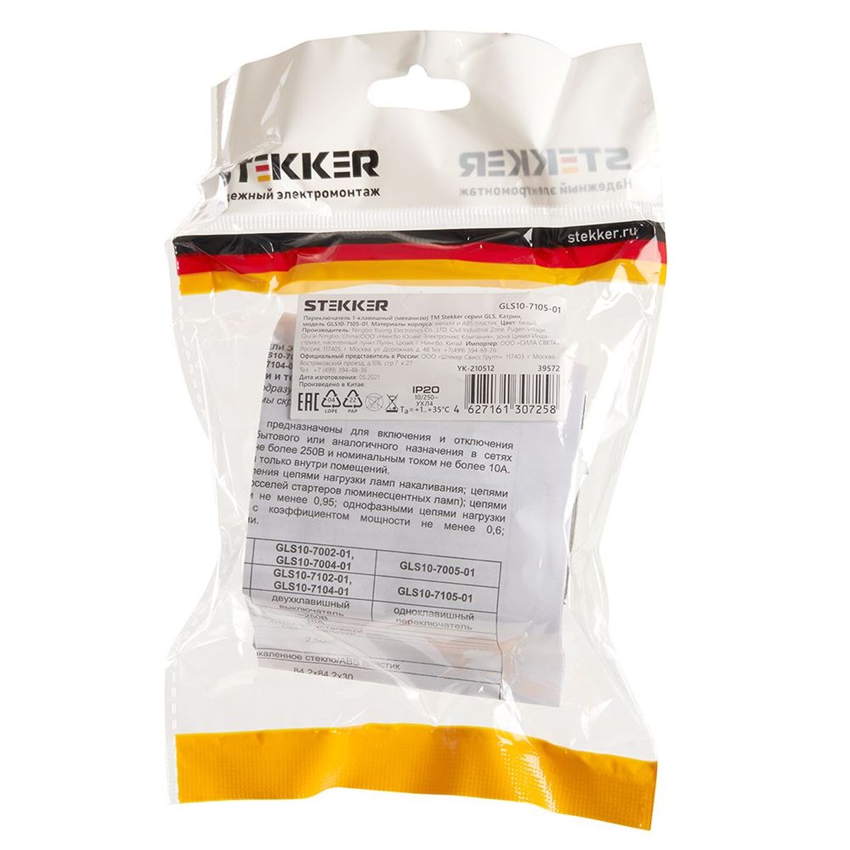 Переключатель перекрестный 1-клавишный (механизм), Stekker, 250В, 10А Мия, RSW10-3110-01, белая магнолия 50569