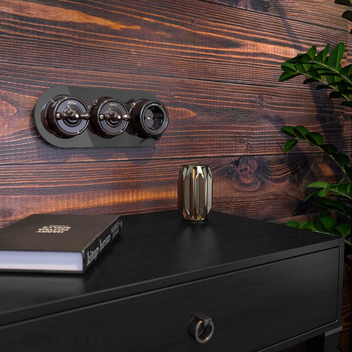 W5020234/ Выключатель двухклавишный влагозащищенный Gallant (черный с серебром)