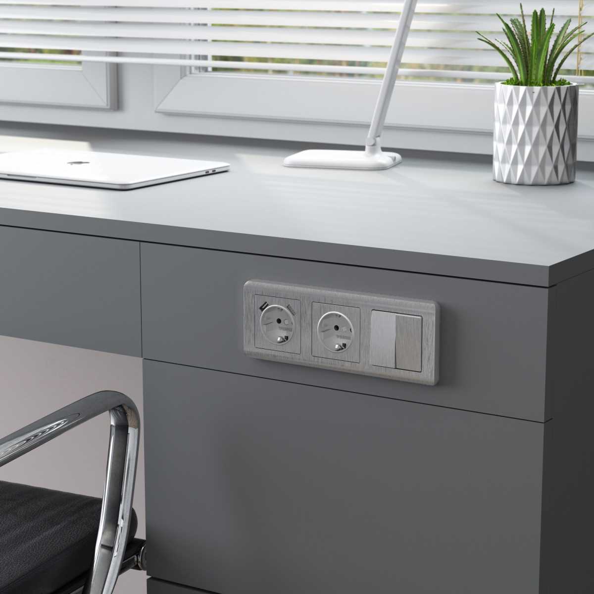 Выключатель - розетка Mono Electric Octans IP20 одноклавишный - 2К+З бело-серый 104-020001-180