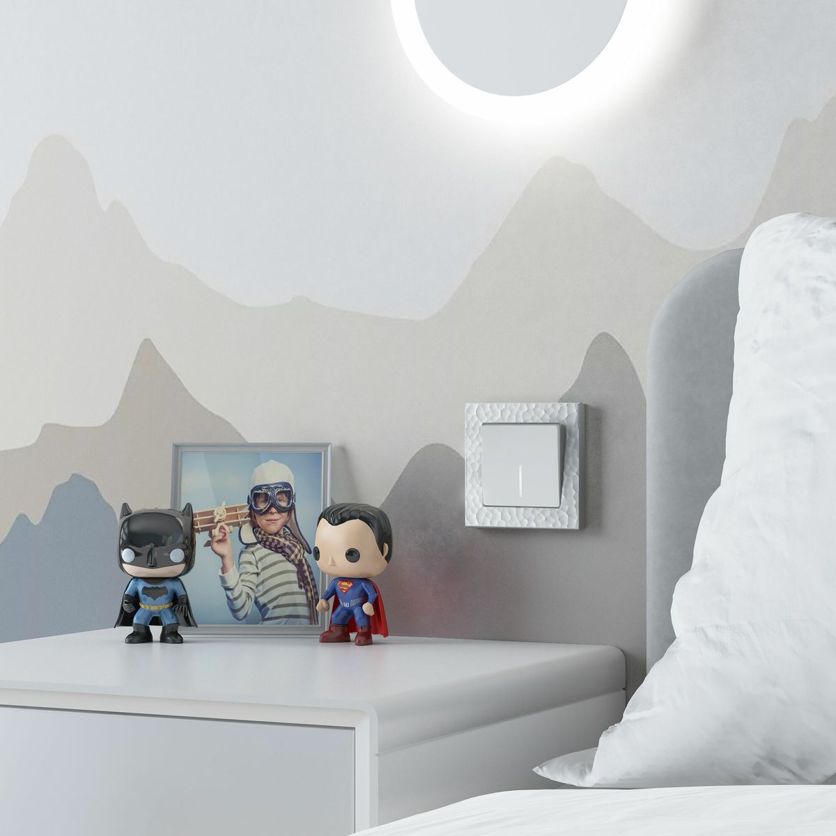 W5010134/ Выключатель одноклавишный с подсветкой Gallant (черный с серебром)