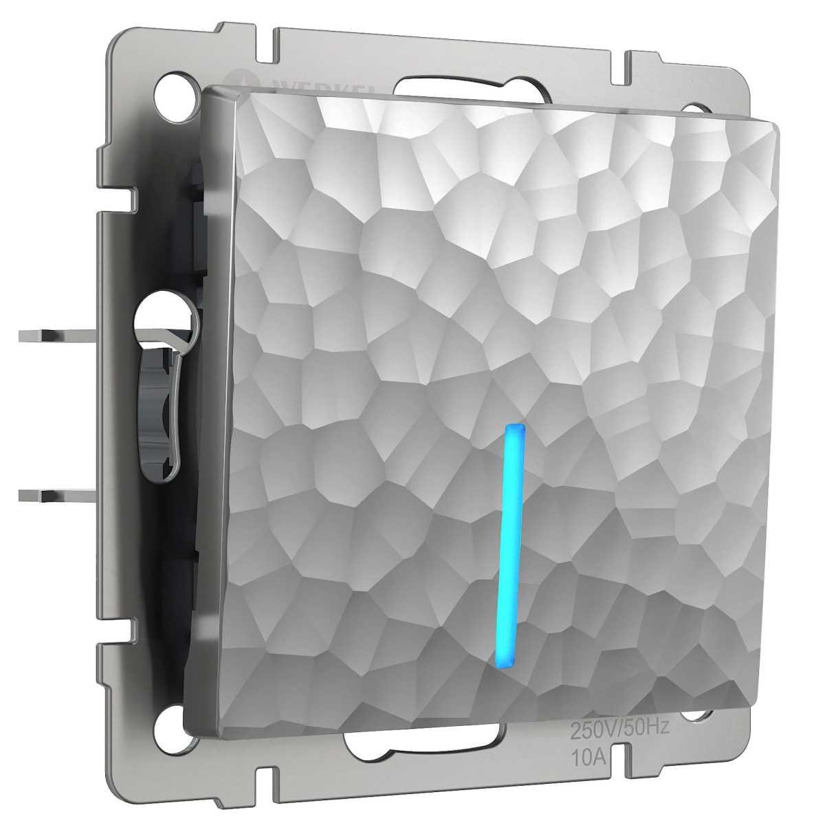 W5010134/ Выключатель одноклавишный с подсветкой Gallant (черный с серебром)