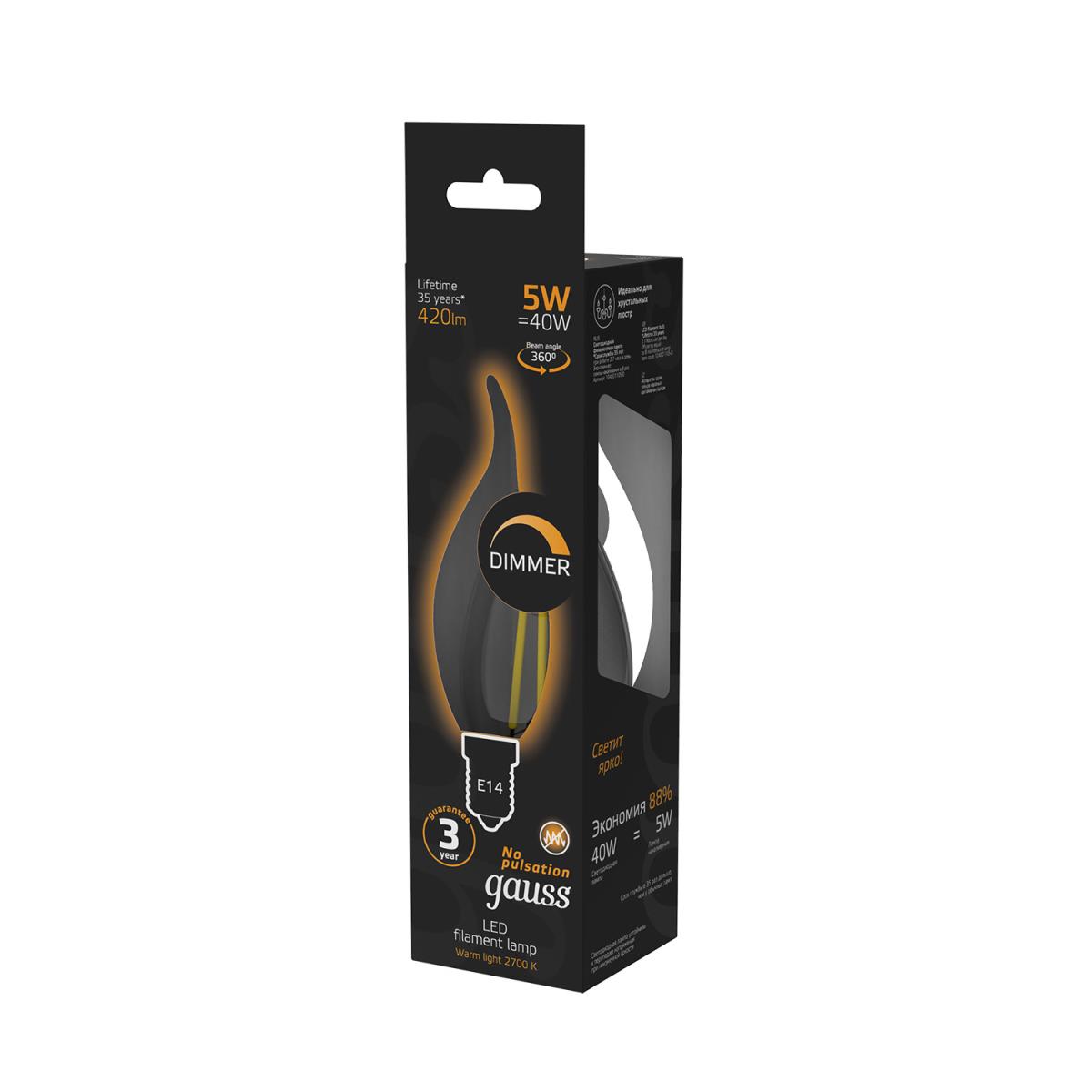 Лампа светодиодная диммируемая Gauss филаментная E14 5W 4100К прозрачная 103801205-D