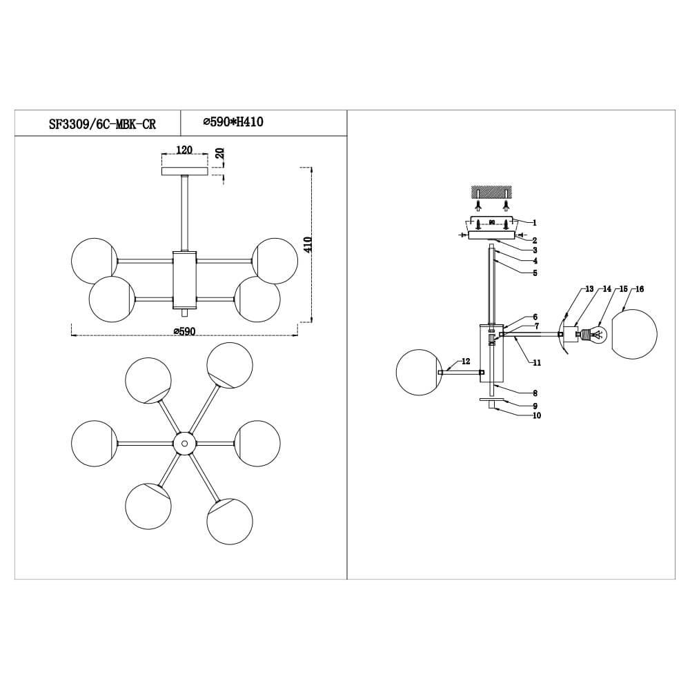 Потолочная люстра Reluce 30560-0.3-02 BK+FG