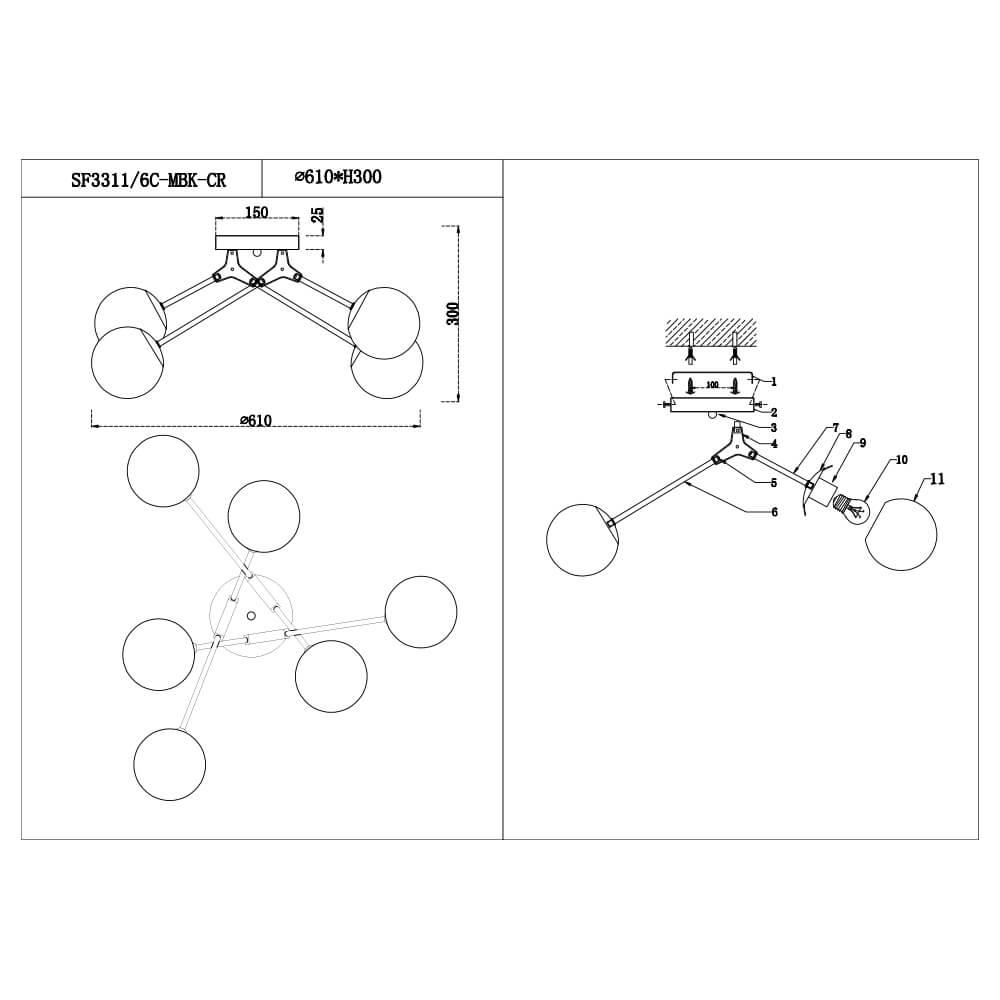 Потолочная люстра Illumico IL0894-6CSQ-26 AB ELITE