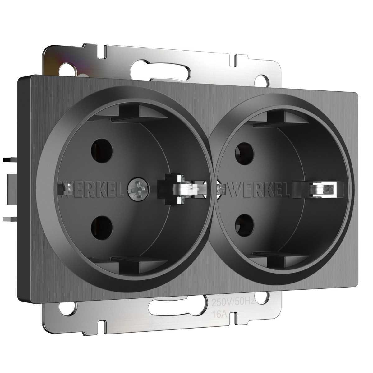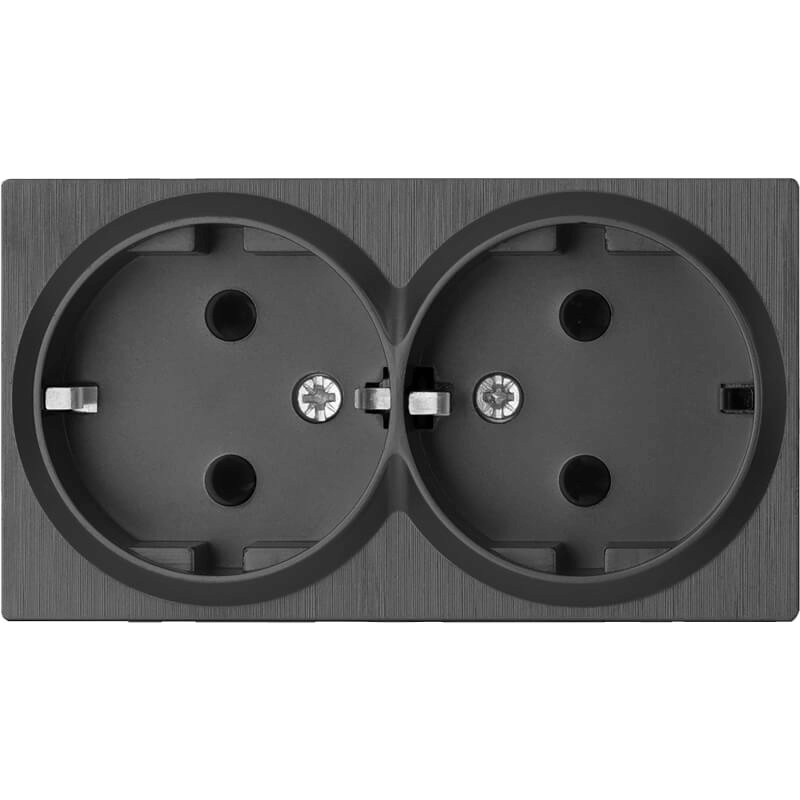 W5072134/ Розетка двойная с заземлением Gallant (черный с серебром)