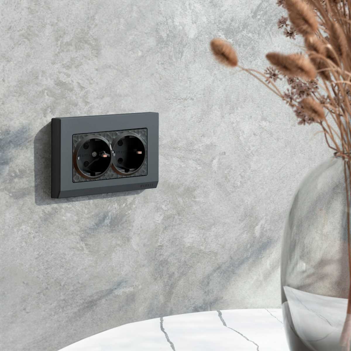 W5072134/ Розетка двойная с заземлением Gallant (черный с серебром)