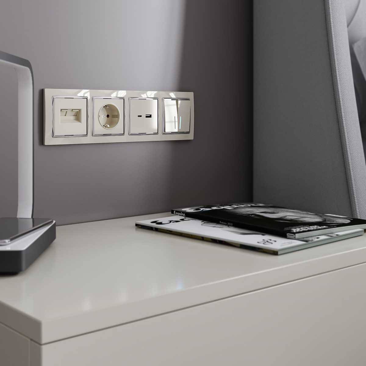 Переключатель перекрестный 1-клавишный (механизм), Stekker, 250В, 10А Эмили, RSW10-5110-08, кашемир, soft touch 49897
