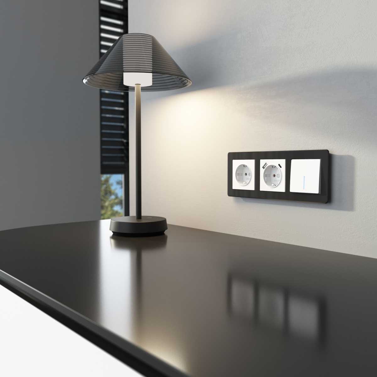 W5010134/ Выключатель одноклавишный с подсветкой Gallant (черный с серебром)