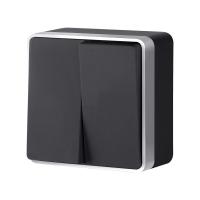 W5020234/ Выключатель двухклавишный влагозащищенный Gallant (черный с серебром)
